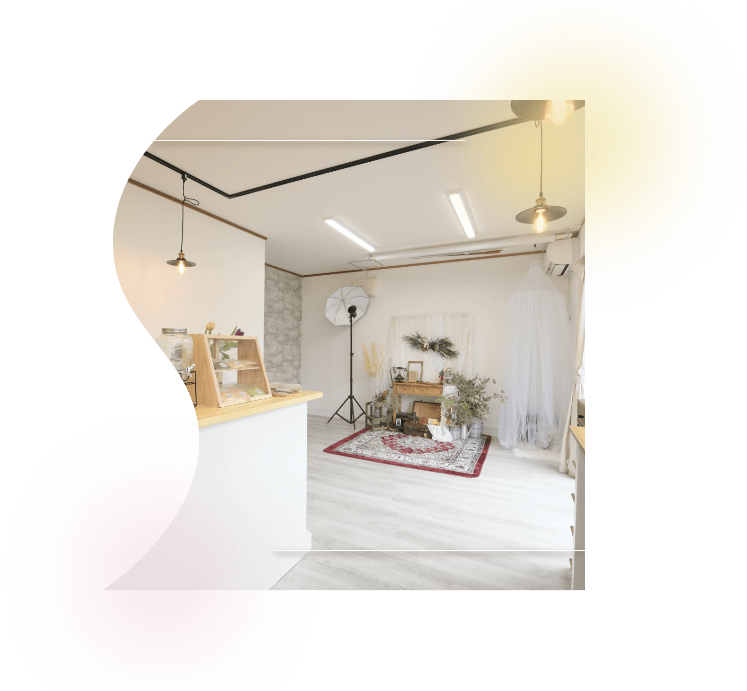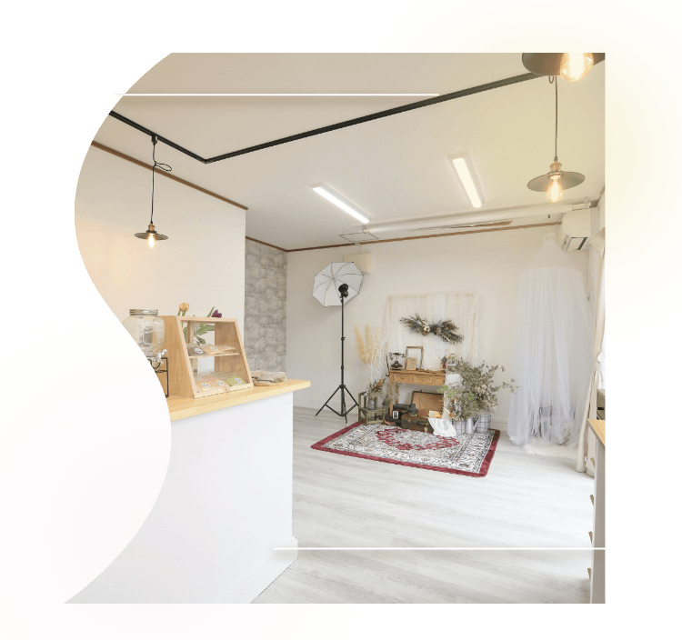 ナチュラルで優雅な空間にドライフラワーが彩りを添え、あなたの“自然体の笑顔”を美しく切り取ります。