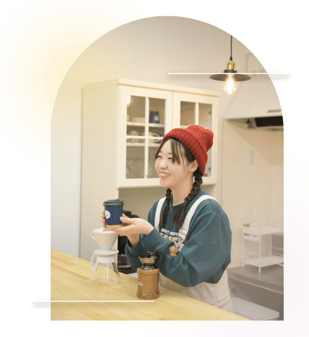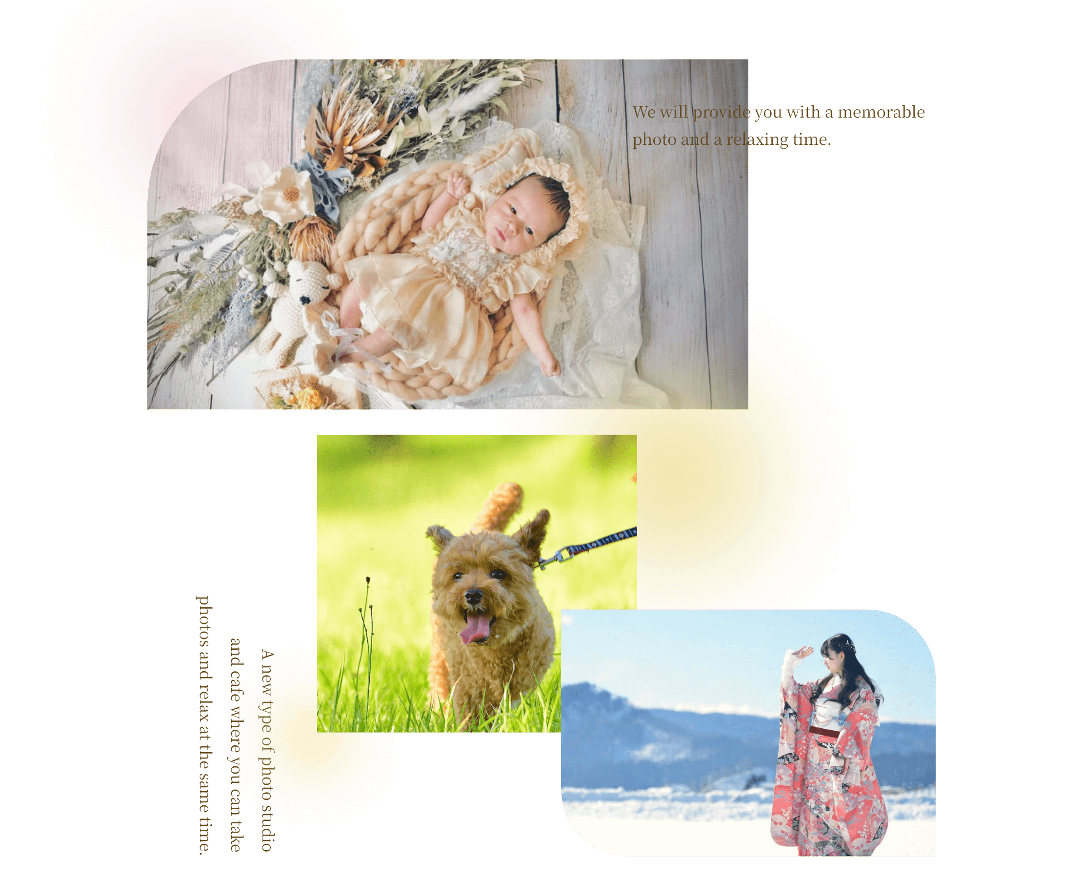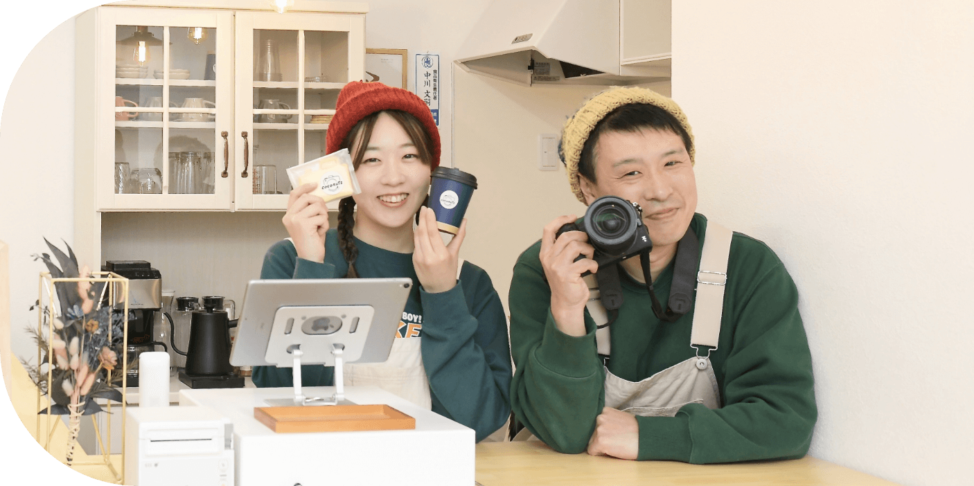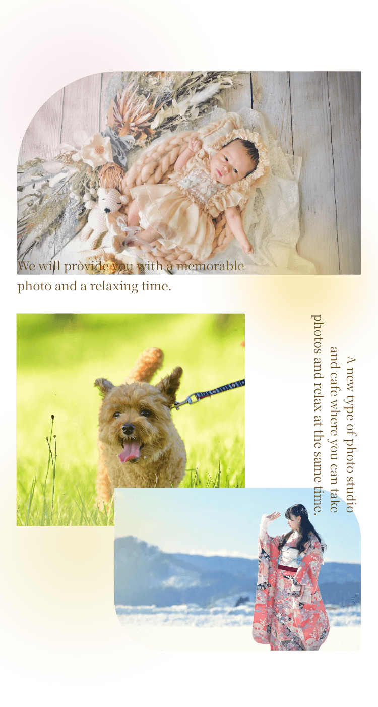 撮影では自然な笑顔を、カフェではほっとできる癒しの時間を。